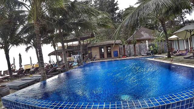 游完了景点,就是为了今天,在度假村好好享受下阳光沙滩!!!我们的度假村,几百米外就是私人海滩,有无边游泳池,还有独栋房子。房间里,淋浴都是半露天的。哈哈哈~