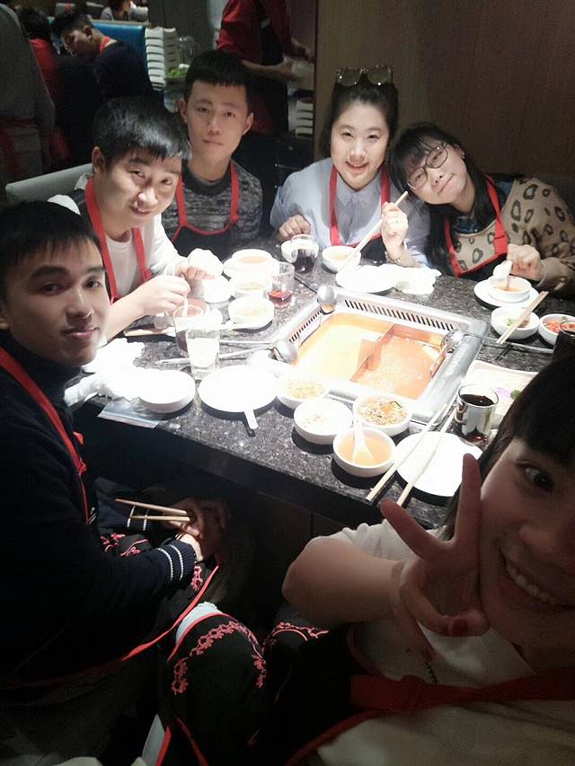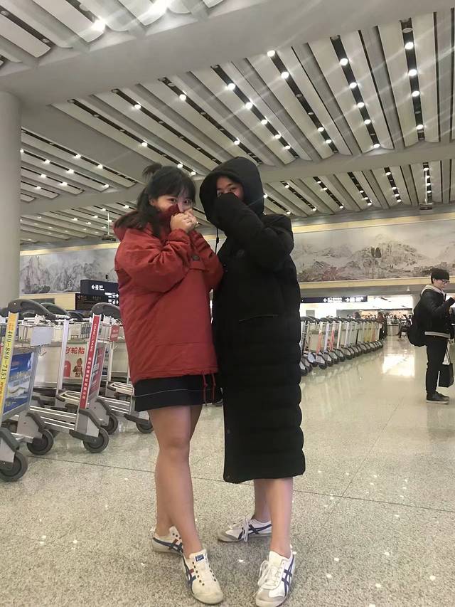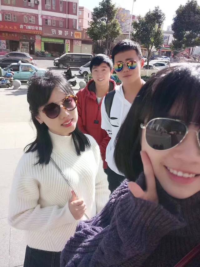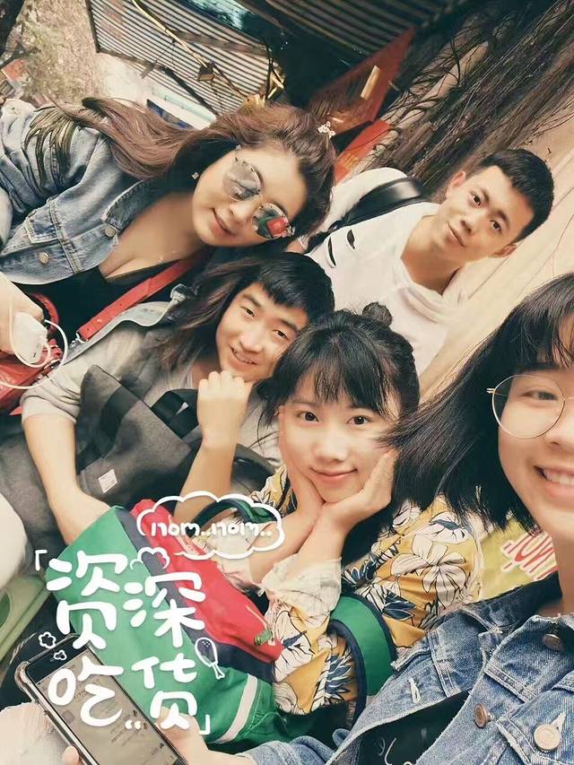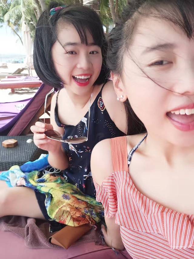 两位蓝衣服的美少女,第一位是我,第二位是我输。女生中的颜值代表。负责吃吃吃、买买买。