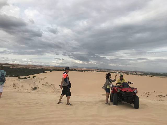 迷迷糊糊睡醒来,美奈就到了。被称为一半沙漠一半海水得地方。为了防止明天又突然的生病,我们决定到了就预约吉普车去看景点看日落,然后明天好好休息。当然,猫姐拒绝了。她说她要看日出。。然而并没有一天去看了。。
