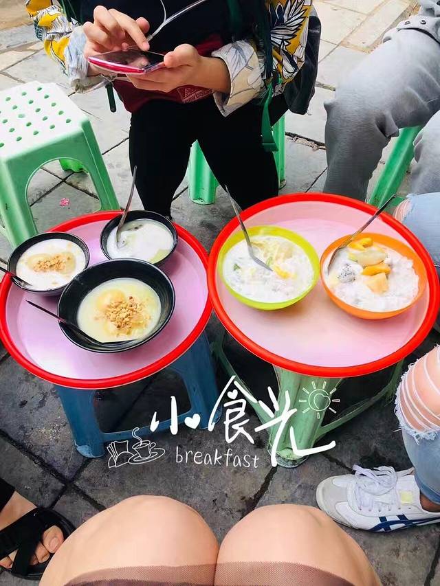 然后输在网上攻略上看见了越式甜点,于是我们决定不留遗憾,又去寻找,找了二十分钟,在这个毫不起眼的店铺就是传说中的越式甜点。我们都走过去了好远,又询问路人又倒回来。问题来了,在哪里吃呢,就是在店铺的对面,马路边坐着吃。是不是别有一番趣味。哈哈哈~