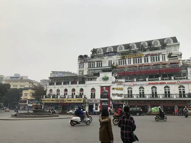 这是凌晨六点,河内街上,我们酒店门口。到了觉得蛮失落的。像我们县城的老城区(上马路)那一片。哈哈哈,不过在异国还是很兴奋。之后就傻了。。到了酒店,前台说没有房间。因为我们预定的确实是今天,但是要两点才能办入住!!!所以!!大家一定要有所准备,多订一天的房!!!不然太受罪了!然后我们五个就在酒店的早餐厅桌子上趴着睡觉。真的是特别狼狈!幸好酒店的服务员特别好,有提前退房的人,就给我们安排了一间,先给我们洗漱等。然后我们五个吃完早餐以后,就去洗漱和休息了一下。