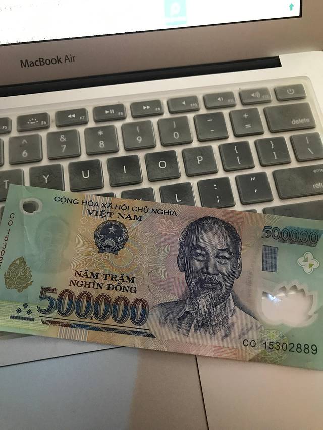 带回国给没能去的男朋友做纪念的五十万越盾,你是不是在傻傻的数0。哈哈。