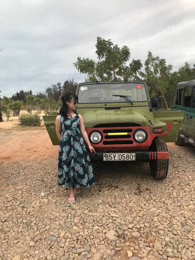 在美奈可以在网上提前预约车队,早上四点半是看日出,下午两点是看日落。所有的车子都是拉风的吉普。不用特意凹造型,吉普车的风能把任何头饰吹乱。