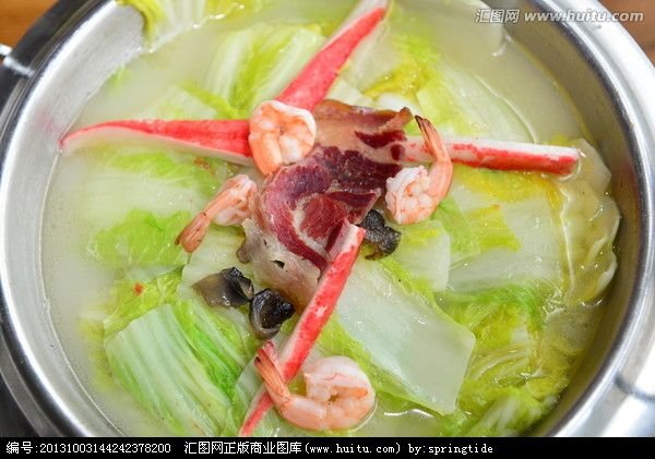 然后,一般家庭还会准备一个“全家福”的热菜,拿大白菜焯水后垫在锅底,上面铺鱼、蛋饺、瘦肉、猪肘等食材一起加热,吃个阖家团圆。