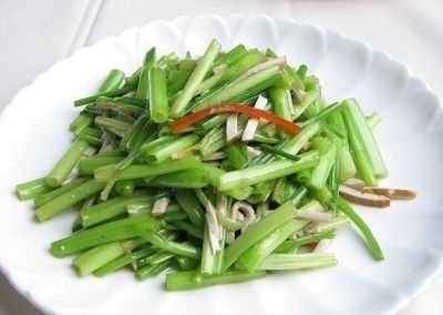 水芹,估计全国范围内没有其他地方会像扬州人一样在过年时节对水芹有着如此巨大的热诚,当然,这里有着地理方面的因素——早先水芹是扬州这边的特产,因为水芹中间是空心的,故扬州人认为年夜饭吃了水芹来年就能“路路通”,一帆风顺;