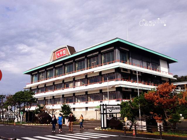在静冈的晚上住在御前崎市一个比较老的温泉酒店——御前崎大酒店,在国内可以搜索到官网,有简体中文可以切换。酒店位于静冈县的最南端,临着太平洋,完全海景房。这家酒店据说早期生意十分兴隆,后来随着经济的不景气也就慢慢变得不太景气了。酒店的装修比较古典,通往吃饭的太平阁的是一条长长的甬道,坐在太平阁的落地窗边吃自助时可以看见太平洋和远处的富士山,非常美好。