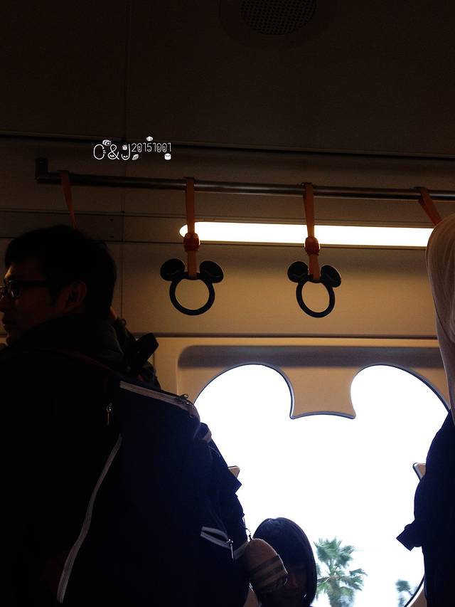 到了舞滨后买迪士尼小火车的票,我和R稀里糊涂地买了一日券而不是普通票,不过既然回来还要坐,那么虽然贵一点倒也方便。小火车上都是异装的少女,各种公主服大浓妆。(东京女孩子都画浓妆,比我矮很多的小姑娘都刷起厚厚的睫毛膏)小火车的拉环和车窗都是米奇的头形。