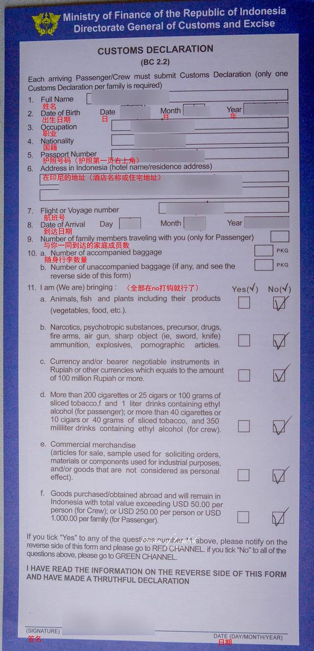 在飞机上空姐会发一份入境卡让每个人填写,出机场时会有专人回收。