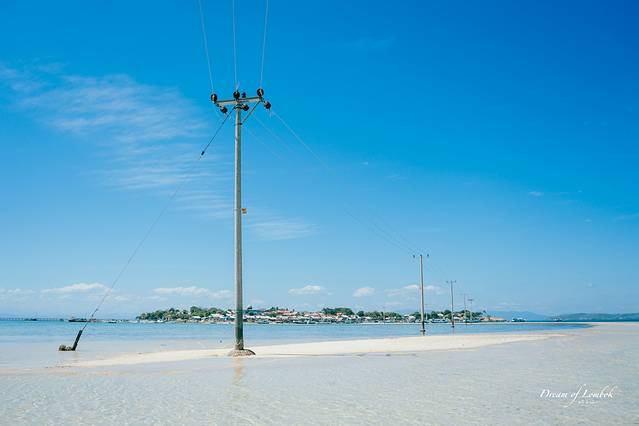 不远处聚集着人家,这些电线正为他们提供着电力。生活在海上,真是件浪漫的事情。