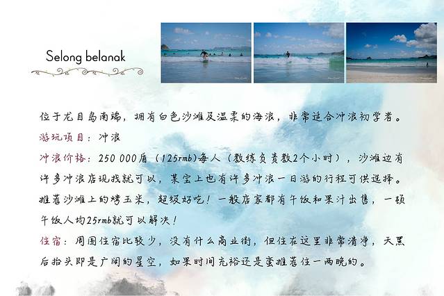 selong belanak属于龙目岛比较偏的地方,住宿及娱乐的地方比较少,所以大多数人会选择往返的一日游或是住在较近的库塔。