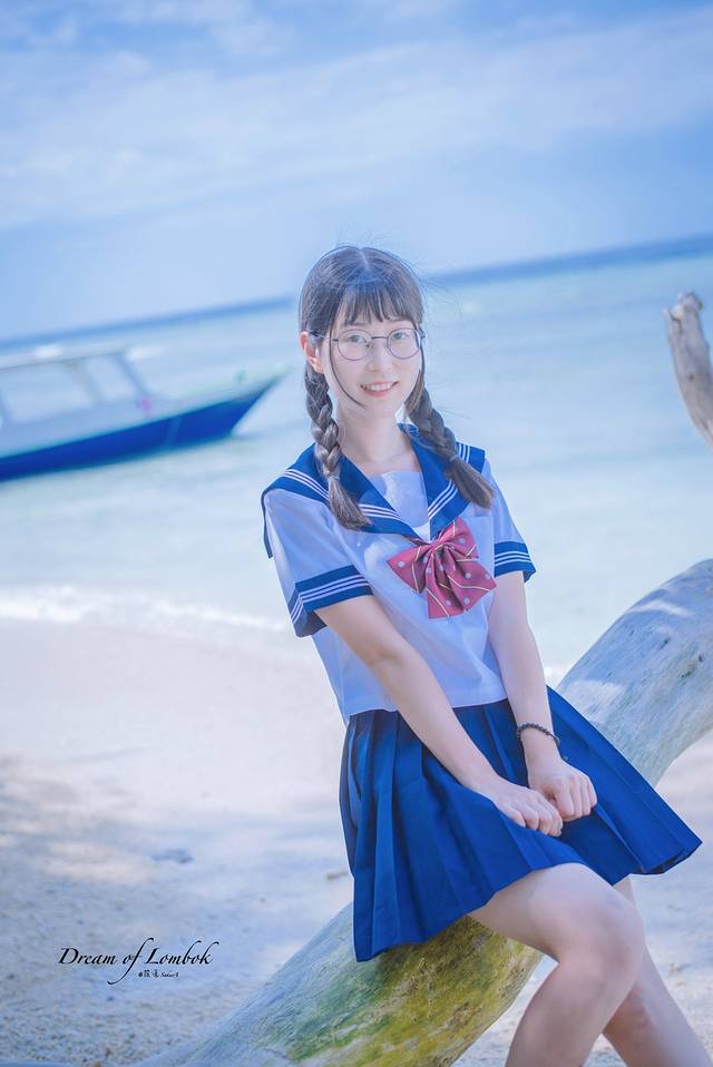 终于,喊着要穿水手服在海边拍照的愿望实现啦,虽然没有好好的化妆,头发也被风吹得乱乱的,但这就是我本来的样子呀。