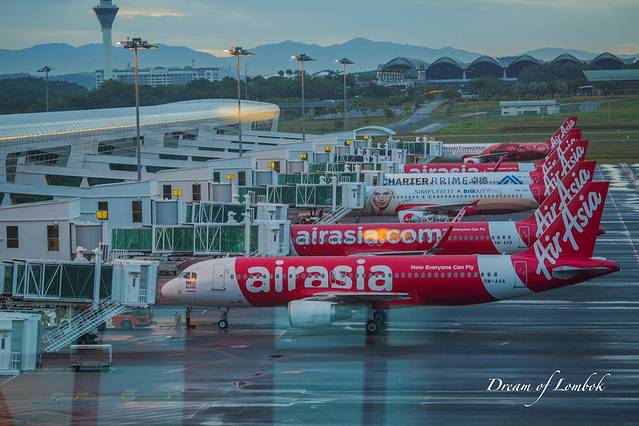 亚航的红色飞机整齐的排列着,也成了一道美丽的风景。