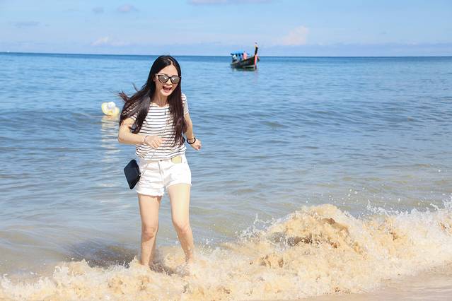 海浪追逐着沙滩,一波又一波,裤子最后也被玩湿了。