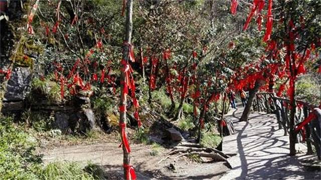 走完玻璃桥就来到许愿林,可以在这边买红布条子,系在树上。