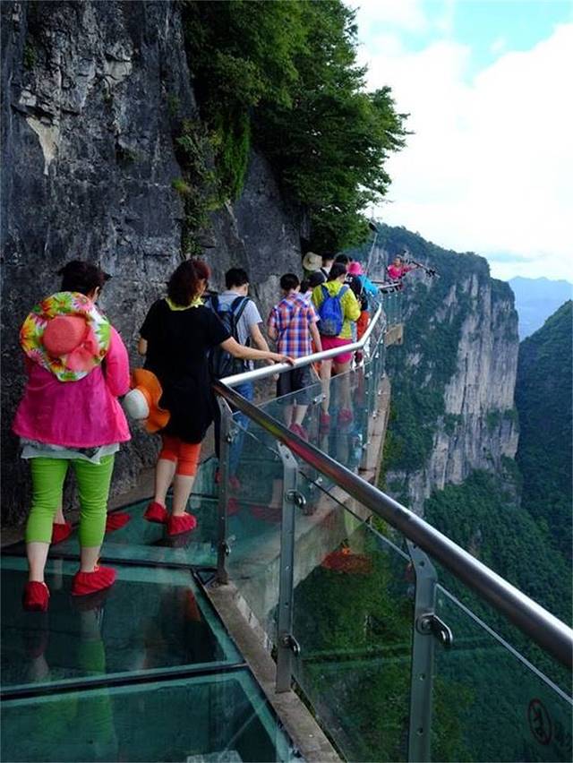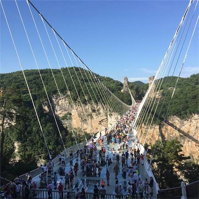 映入眼帘的就是长长的玻璃桥了,横跨大峡谷两岸,人挺多的,然后我们慢慢的往下走,玻璃桥中间是透明的玻璃连接着的,两旁是不透明的,估计是专为恐高人士设计。