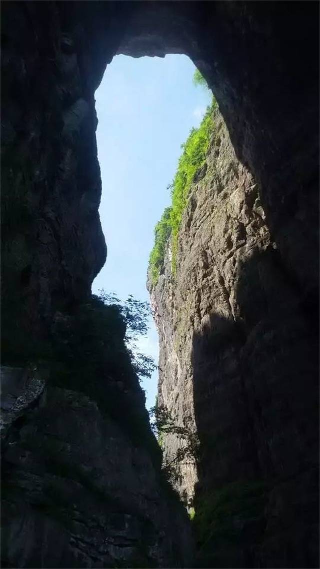 沿着标示牌走可以看到就是“天下第一桥”,两座山峰被一条长廊连在一起,形成天然桥洞,气势壮观雄奇,感觉石桥好像也颤颤悠悠,晃晃摇摇似的,感觉踩一脚就会塌一样,原谅我词穷了。