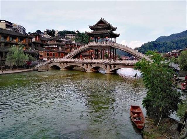我们选在凤凰驿站,老板很热情性比价很高,113元/晚。到客栈放下行李出去转转,沿着沱江。走就可以了,旁边有很多小巷子,路上有很多阿姨婆婆问需不需要穿苗服拍照,买花,不愿意买就说买过了就好。