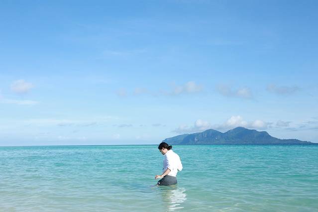 稍微休息下,下面就是今天的重头戏了。深潜体验,教练会先在船上教你如何器械的怎么使用,包括面镜排水呼吸器排水耳压的问题。讲完操作以后教练会叫我们手拉手穿好装备找一个靠近岸边的岛全部在水里面按照教练的手势依次做教练在船上教的内容(这里教练会强调,如果你没有办法在浅滩附近完成上面的动作,教练是不会带你参加接下来的深浅体验的,因为深浅其实还是有点危险的)和我们结伴的另一对女生就是没有办法完成教练教的动作最后只能把深潜变成浮潜了。
