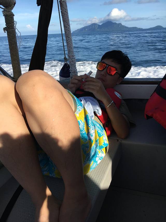 今天的天气不太好,我们就2个人完了皮划艇还去白沙滩拍了照潜了水。在岛上除了玩水其实也真的不懂干点什么。早上五点半的闹钟起来到处乌云密布,根本就木有什么日出看。就只能继续睡了。