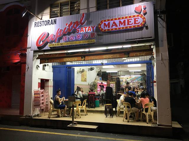 回到酒店睡了一觉,晚上不下雨去哪都比较方便。起来肯定是要找吃的啦,去了心心念念很久的“佳必多沙爹 Capitol Satay”各种攻略推荐,各种网站推荐!!!本来其实是不抱什么希望的,因为都说周一不开门而且又碰上元旦。但是离得不远就溜达过去了,出人意料的好运气居然开!!!而且排队就排了十分钟,高兴坏了,我们前面是四个韩国小帅哥在等位可见这家店不止在国人的认知内很火哦。我家臭cc说这次我们还是很顺利的,基本想去的地方都开着。本来下午就吃了好多东西,晚上其实真的不太吃得下随便吃了点。味道还是可以的有香香的花生味,甜辣的看大家个人口味吧。我觉得还得,味道还是不错的。价格也很便宜,我们吃了40+rm实在是吃不太动!上点图给大家看看哈。