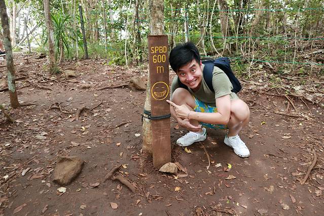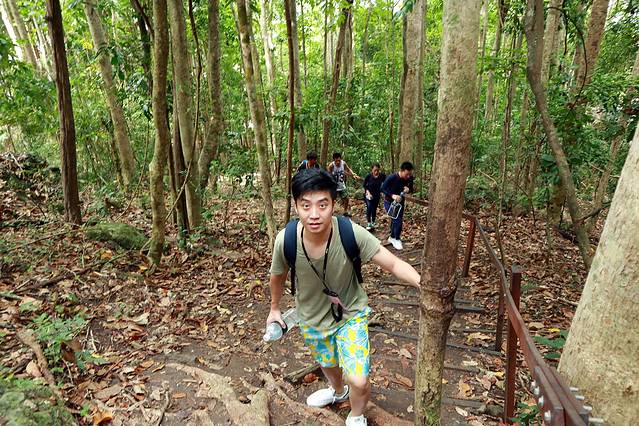 刚上岛拍的。哈哈,看见我家臭cc手里的水没有。教练叫我们上山2个人发一瓶水,开始我们还在想爬个山抗那么大一瓶水…后来一路爬山一路出汗喝水。回到山下水也喝得差不多了。