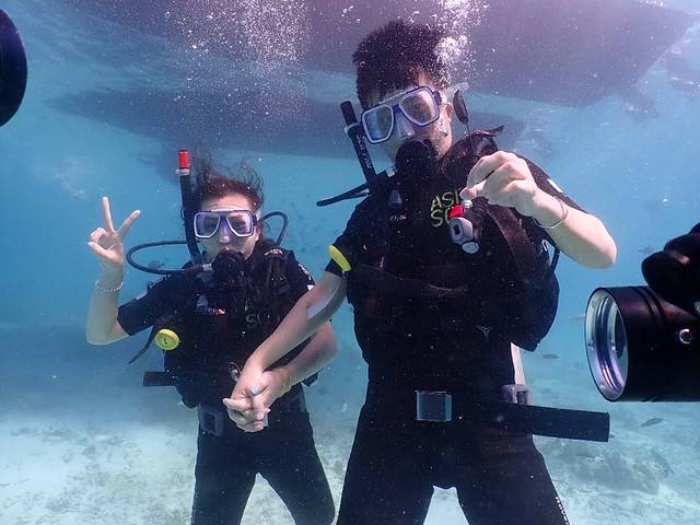 这个是教练帮我们拍的照,友情赞助的!!!有些店是带有潜水拍照这一项的,我们之前报的时候是有的,但是后来取消了。想留点妹妹早的童鞋们可以留意那些有视频有照片的店。