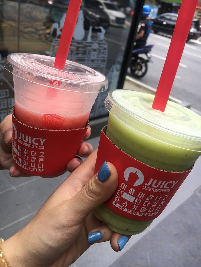 街上随便一家现榨果汁,那边水果都好甜的果汁也不偷工减料!!!臭cc最爱的西瓜汁和我的猕猴桃汁!