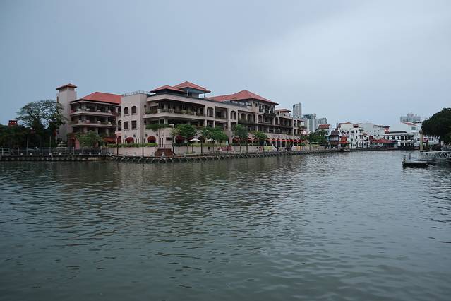 酒店不远我们沿着马六甲河走回的酒店。傍晚了,雨渐渐停了。但是能见度不高随手拍了张马六甲河对面的酒店。照片看起来一般哈实际的话还是很不错的。