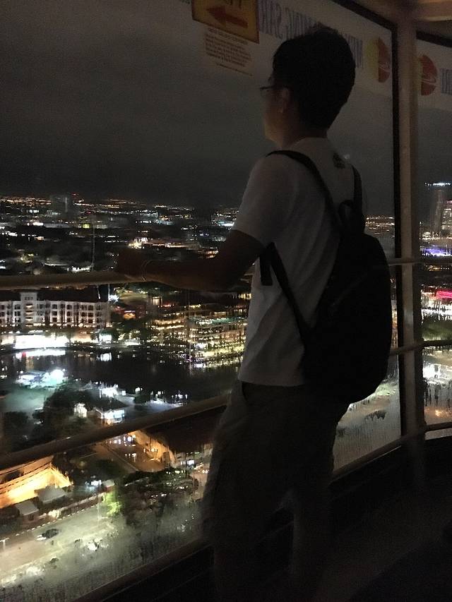吃完我家臭cc发现了一个高高的会亮的东西,就是前面我说的马六甲旋转塔啦。其实就是一个会升降的旋转塔。上面冷气开的超级超级冷,因为时间不太长忙着看夜景就随手拍了一张。具体票价不记得了,票根也搞不见了。这里对不起大家……不过真的比圣保罗山要高要看得远,没得看白天什么样看了下夜景发现马六甲其实好大。这里我是建议大家白天去,晚上看海的方向啥都看不到其实是有点遗憾的,因为本来来马六甲就是想看看海峡的。