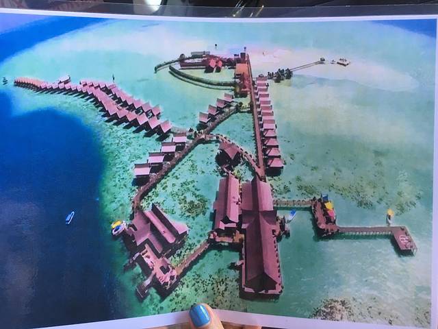 上了岛会先在餐厅集中好,每个座位面前会有一杯冰爽的橙汁(勾兑的,不好喝,鉴定完毕)。岛上会中文的招待会来和大家介绍注意事项,原来我们以为这个岛可能会有世界各地的人来所以才那么抢手很难预定,结果上了岛才发现99%都是中国人。岛上就遇到一对日本还是韩国游客,除了招待以外的游客基本都是中国人……