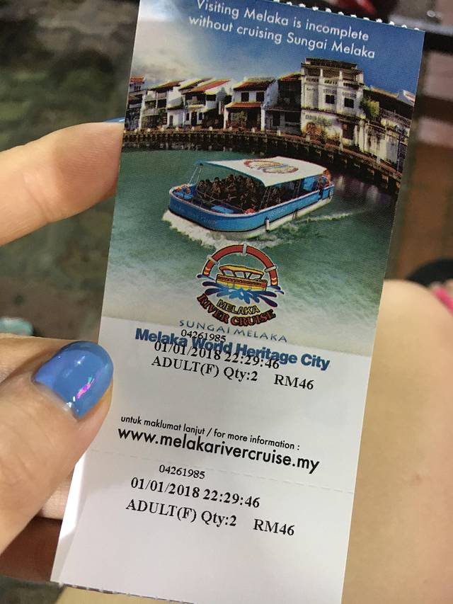 游船开到晚上11:00PM大家看好时间,两个人票价46rm游船是往返的,全程大概四十多分钟,感觉这趟不亏……下面上一张票和一张夜景。专注于看夜景了而且晚上出来没带相机就随手拍了一张,将就看吧。