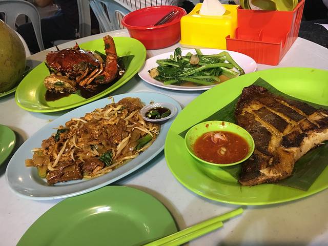 明记烧鱼美味店 Restaurant Meng Kee Grill Fish,点了魔鬼鱼、老鼠粉,炒青菜、沙爹肉串、黑胡椒螃蟹