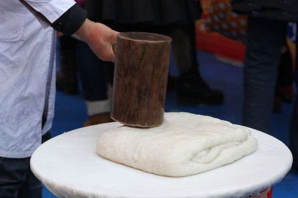 南方人的习俗吃年糕——年糕因为谐音“年高”,象征着黄金、白银,寄寓新年发财的意思。