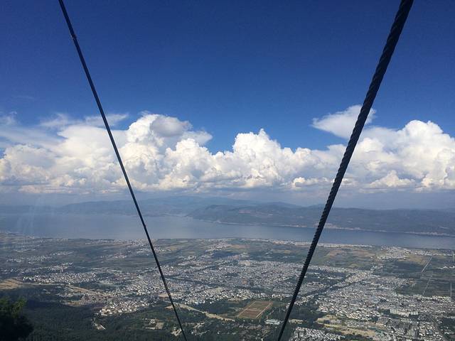 因为当天已经是黄金假期了,所以上苍山的路有一段有交通限制,只能步行上去。上苍山有3条索道,前车之鉴,所以我们选择在淘宝网上买票,客服很有耐心帮我们解答,出票也快,我们预了1天时间来玩这个,所以选了洗马潭索道,套票320元/人,包括索道+苍山地质公园+天龙八部影视城,事实证明我们选择大索道是对的,一路风景好,不过一开始太阳没出,所以全程是有点灰蒙蒙的。索道分两段乘坐,每次6-8人左右一组吧~