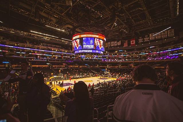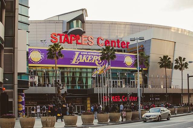 这就是本届赛事的场馆——斯台普斯球馆了,是NBA历史上最伟大的球队湖人队的主场,洛杉矶还有湖人队史共56次进入季后赛、31次获得西部冠军、16次获得总冠军(NBA历史第二)、最高连胜纪录为33场(NBA历史最高)。值得一提的是这里也是另一家NBA球队,快船队的主场。