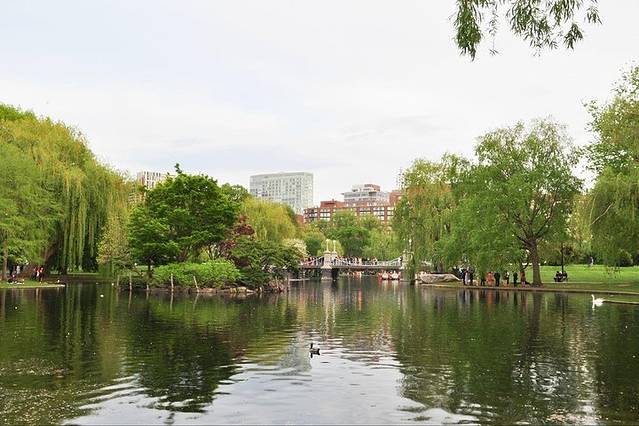 在自由之路的起点坐落着波士顿公共花园。波士顿公共花园建立于1837年,慈善家霍勒斯•格雷请求在这片土地上建立美国第一座公共植物园。波士顿市议会本想将这块地出售,格雷通过协助市议会的反对派,最终成功能将这块地保留成为公共花园。