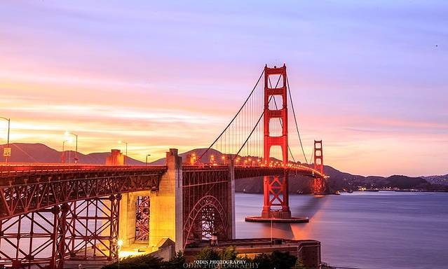 与奥克兰隔着海峡相望的是一座非常文明的城市叫做旧金山,而连接这两座城市的就是一座非常著名的桥叫做金门大桥。