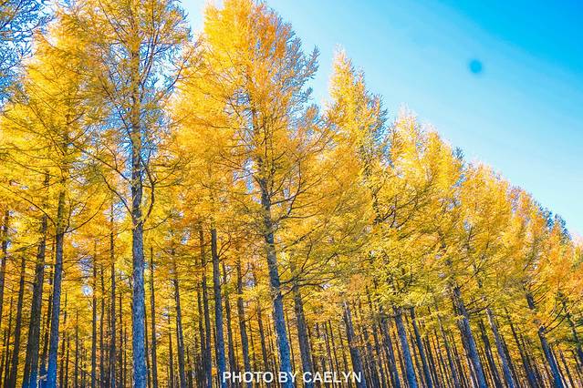 沿途的树林也正是最好看的时节,搭配好到爆的蓝天,这应该就是秋天应该有的感觉了。