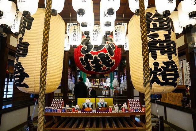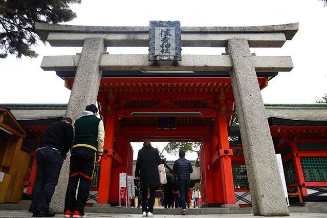 来这里参拜的人群以生意人居多,而神社内摆设着运输船只等行业供献的大约600只左右的巨大石灯笼,上面有企业名字,视为最虔诚的祈愿。