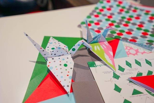 下一层楼就是折千纸鹤的地方,有很多热爱和平的人来这里。