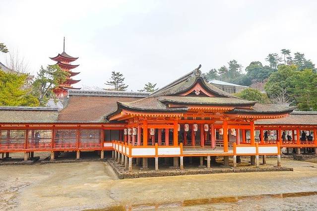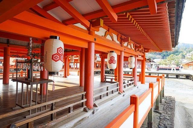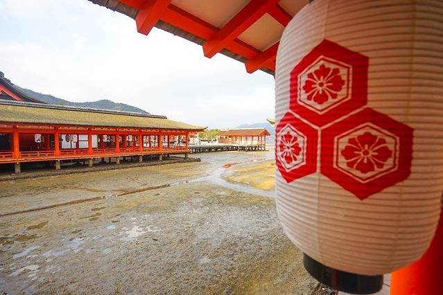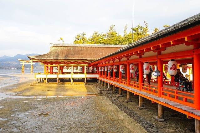 【严岛神社】修筑于濑户内海海滨的潮间带上,神社前方立于海中的大型鸟居,被称为“日本三景”之一的严岛境内最知名的地标。