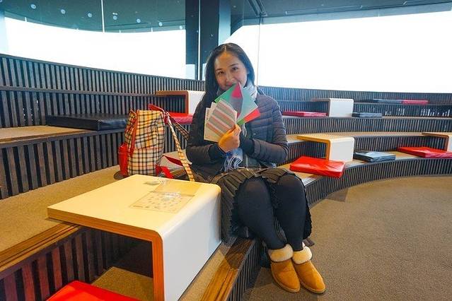 叠好之后,会有人带你把千纸鹤放飞,叠的好就会落到最下面,不好的话就会卡在中间。看着和老公叠的两只千纸鹤都顺利飞到最底端,心情激动。大楼的外面才得知,我们叠的每一只千纸鹤都会在玻璃墙中显示。