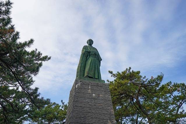 沙滩的不远处站立了一座非常有名的名人雕像坂本龙马像,坂本龙马是日本历史上重要奠基楷模人之一,他为推进结束日本封建时代有着极大的帮助。