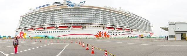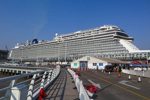 到达码头后,就看到了大游轮,心里满是期待,询问安保人员得知在2号门办理登船手续。