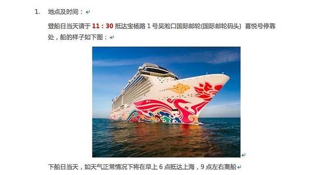 这次是圣诞节特别行程7天6晚,费用比平时5天4晚的贵一些,如果避开圣诞、跨年、新年、寒暑假等旺季,船票就会便宜。登船的费用是按单人算的,订一间房间,必须满2个人才能起订,如果想一个人住一间,就需要补差价,这个在各旅游平台、旅行社都会告知。从预定到相关事宜的反馈,效率很高,不几天就收到了短信和邮件通知登船注意事项,说是从上海吴淞港登船。出行前先下载APP,这样可以随时了解行程规划,建议在家都下好。