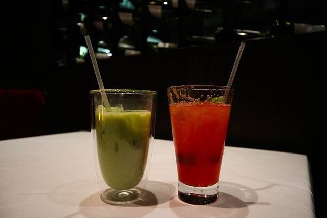 一杯猕猴桃奶茶,一杯西瓜特调,在特色餐厅也可以点畅饮,提前和服务员说一下就好。