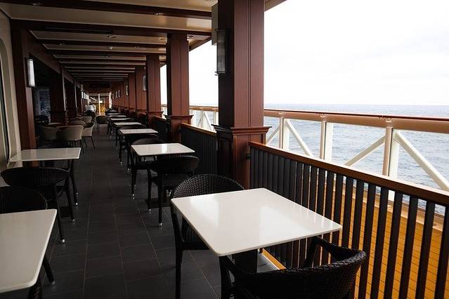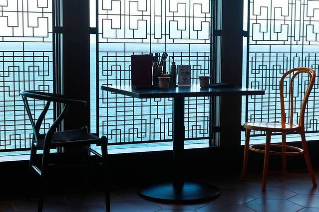 靠近甲板道的地方,有一些摆在室外的餐桌椅,冬天可能就会嫌冷了,夏天来一杯啤酒,一盘炸鸡,再望望海景,肯定很惬意。