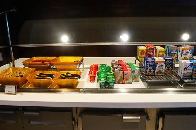 观景廊里的环境比较好,很安静,服务也相对周全一些。品种虽然没有悦园自助餐厅的多,但算是少而精吧,有不同口味的酸奶、牛奶和麦片。