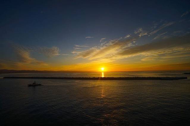 在甲板上远望着海上的日出,美到心都被融化了,当地人也说,这样的美景也很少能看到,或许正是表达了欢迎我们的到来吧。