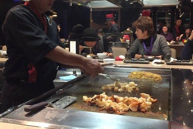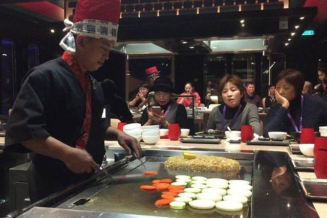 铁板料理的厨师特别有意思,会结合美食制作过程给你表演节目,边打着节奏,边唱着歌,边烹饪着美味的料理,全场都嗨了。几位大叔还点了清酒,小喝了几口,陌生、熟悉的人,各种畅聊。